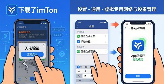 下载之后,存在着一些常见的误区,其中的一个误区是,直接去进行“无法验证”的点击。实际上,需要先去到“设置 - 通用 - 虚拟专用网络与设备管理”那里,手动去信任企业证书。要是不这么做的话,App就会出现闪退,不能够正常打开了。